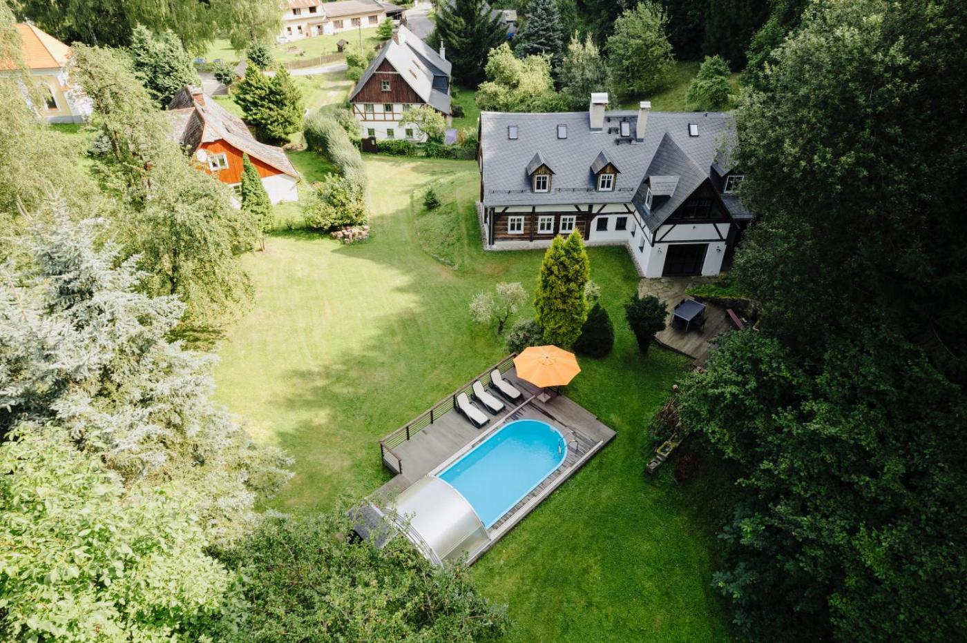 Located in Bílý Kostel nad Nisou, Forest View Cottage provides accommodation with private pool, free WiFi and free private parking for guests who drive. Guests can benefit from a patio and an outdoor fireplace. The property is non-smoking and is situated 17 km from University of Applied Sciences ZittauGoerlitz.