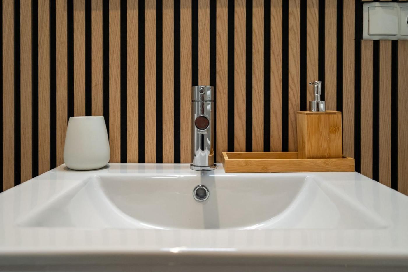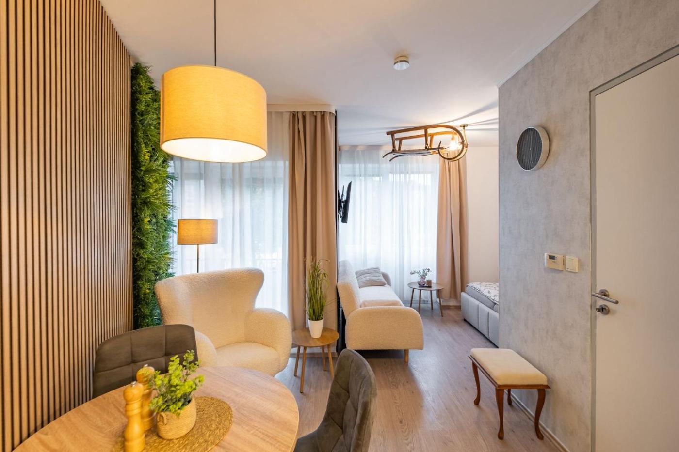 The apartment consists of 1 bedroom, a living room, a fully equipped kitchen with a microwave and a coffee machine, and 1 bathroom with a bidet and a hair dryer. A flat-screen TV is provided. Additional in-room amenities include chocolates or cookies.