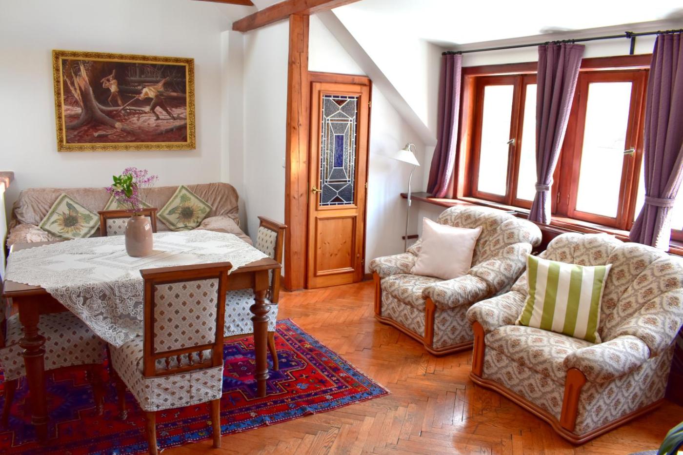 One-Bedroom Apartment. This apartment consists of 1 bedroom, a seating area with a sofa and 1 bathroom with a bath or a shower. The fully equipped kitchen features a stovetop, a refrigerator, kitchenware and a tea and coffee maker. The apartment provides a dining area, a wardrobe, heating and a flat-screen TV. The unit offers 3 beds. ;